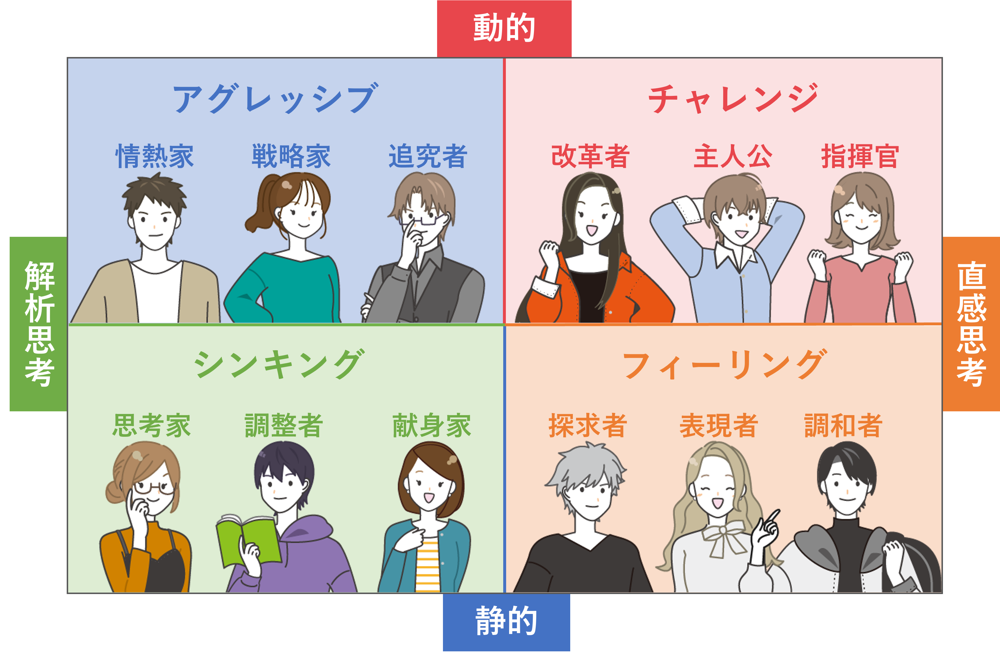 どんなタイプがあるの? 2024.11.082024.12.13 12タイプ 12の『タイプ』の中から、「あなたのタイプ」を診断しています。 もっと詳しく 診断結果では、さらに詳しいタイプを見ることができます。「タイプ詳細」の一覧はこちら
